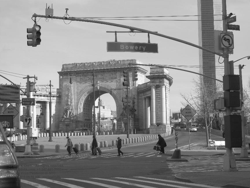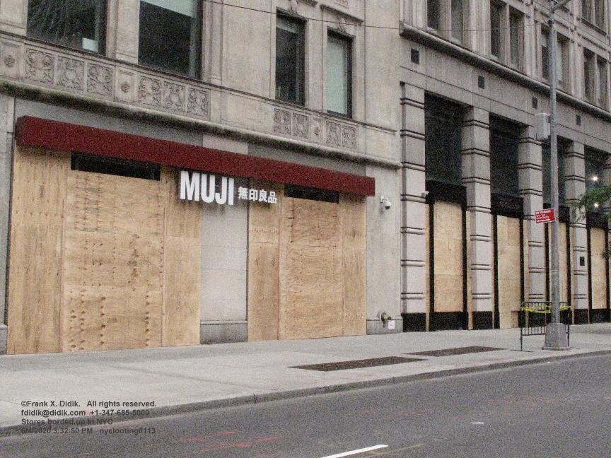 camera store on West Broadway, boarded up to prevent looting and destruction. |
